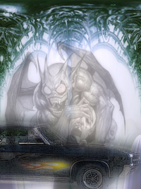 This marks the beginning of his new career: bringing the most despicable souls to the portals of Hell in a ’68 black Buick rag top with red interior, dice, and flames on the front panels. This immortal, dead Grim Reaper does what needs to be done through the power of his mind.